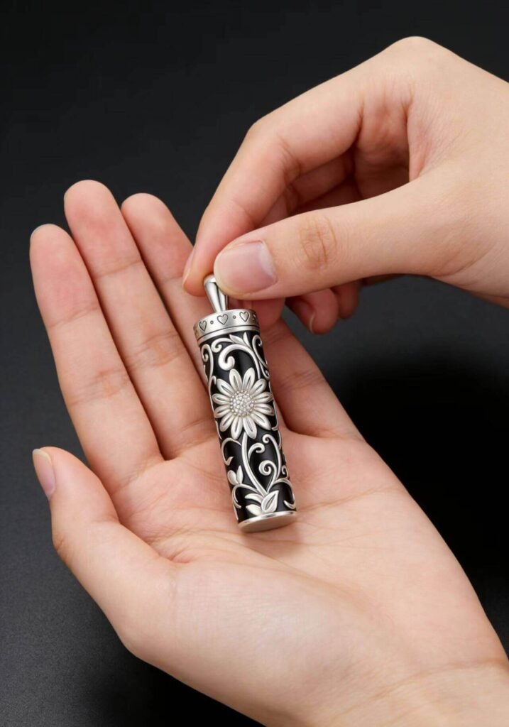 This pendant is absolutely stunning. The intricate floral design is so delicate and elegant, and the silver finish has a lovely shine. It opens easily to hold a small amount of my cat’s ashes, and the clasp feels secure. I wear it every day, and it’s a gentle reminder of my best friend. The craftsmanship is top-notch, and I couldn’t be happier with my purchase.
