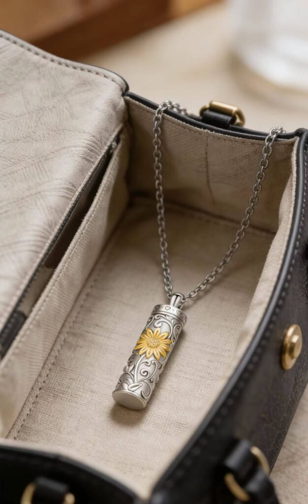 This pendant looks beautiful online, with a lovely floral design. However, after only a few weeks of wear, I’m worried the black enamel coating is starting to peel off. It still opens and closes smoothly and can safely hold ashes, so wearing it occasionally is fine, but I wouldn’t dare wear it every day.